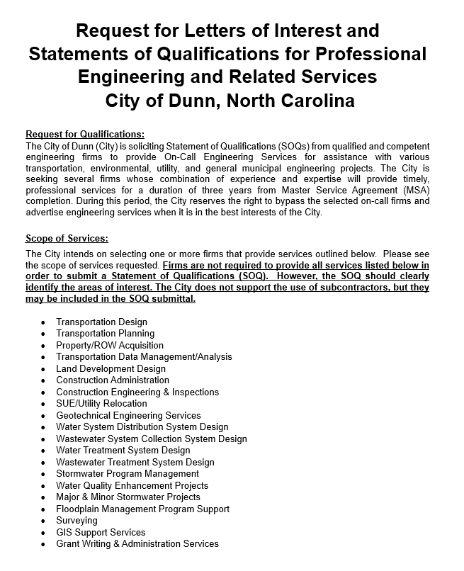The Dunn Planning Board Meeting will be held at 5:30 p.m. in Council Chambers in the Dunn Municipal Building, 401 E Broad St, Dunn NC