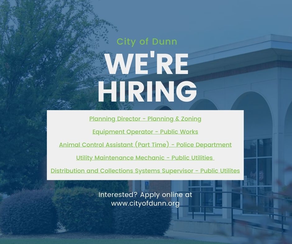 The Dunn Planning Board Meeting will be held at 5:30 p.m. in Council Chambers in the Dunn Municipal Building, 401 E Broad St, Dunn NC