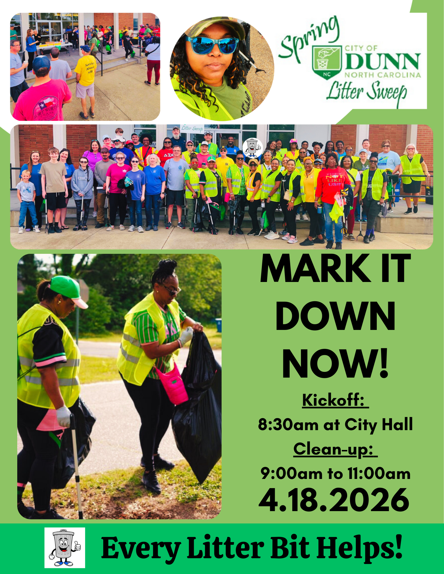 This year's Spring Litter Sweep has been set for Saturday, April 18, 2026. Plans are to meet at City Hall at 8:30 a.m. and pick up litter from 9:00 a.m. until 11:00 a.m. Click HERE to download the Registration Form.