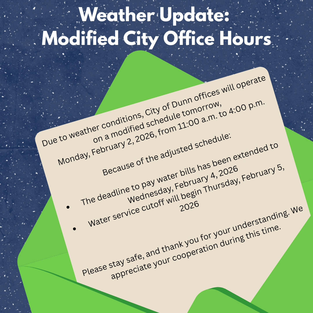 Water customers affected by this change include those who pay water bills to the City of Dunn, areas of Harnett County that use the City of Dunn's water supply, as well as those who pay water bills to Eastover Sanitary District, Sampson County, Town of Benson, Falcon and Godwin.